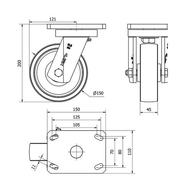 Rueda acero giratoria Alex diametro 150 mm. modelo 2-0519 EAN 8422202205199