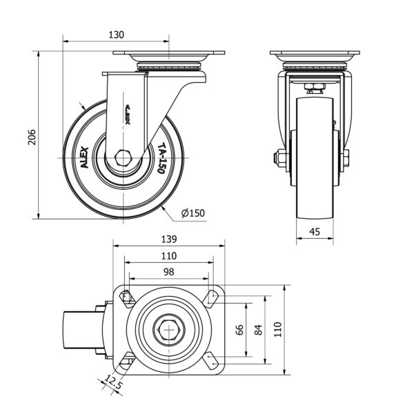 Rueda acero giratoria Alex diametro 150 mm. modelo 2-2894 EAN 8422202228945