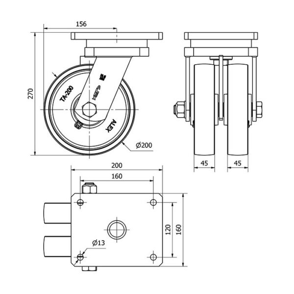 Rueda acero giratoria Alex diametro 200 mm. modelo 2-1886