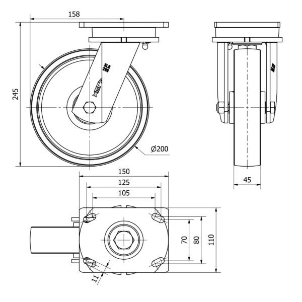 Rueda acero giratoria Alex diametro 200 mm. modelo 2-3683