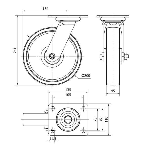 Rueda acero giratoria Alex diametro 200 mm. modelo 4-0859 EAN 8422202408590