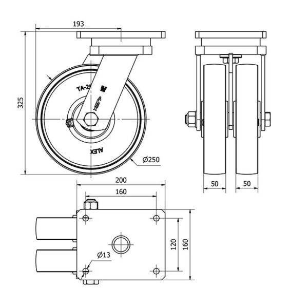 Rueda acero giratoria Alex diametro 250 mm. modelo 2-1887
