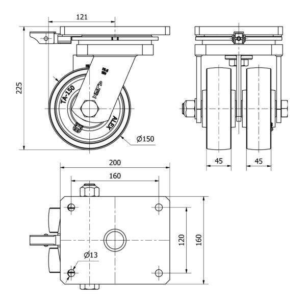 Las ruedas Alex serie HLG-TA son ruedas dobles de acero, indicadas para soportar altas cargas hasta 2.700 Kg. Se utilizan en útiles de transporte logístico, carros de transporte para la industria minera, hornos que soportan altas temperaturas (-40?C. a +300?C.), grúas que transportan materiales pesados, así como plataformas elevadoras, principalmente en el sector aeronáutico, ferroviario y automoción. TA: condiciones de trabajo muy severas donde la existencia de objetos cortantes productos químicos o temperaturas excesivas destruirían a otros tipos de ruedas. Gran capacidad de carga.