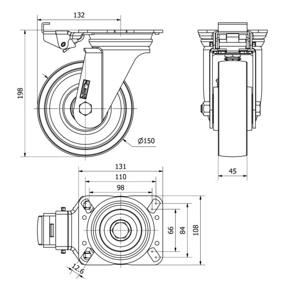 Rueda acero giratoria con bloqueo direccional Alex diametro 150 mm. modelo 2-3900 EAN 8422202239002