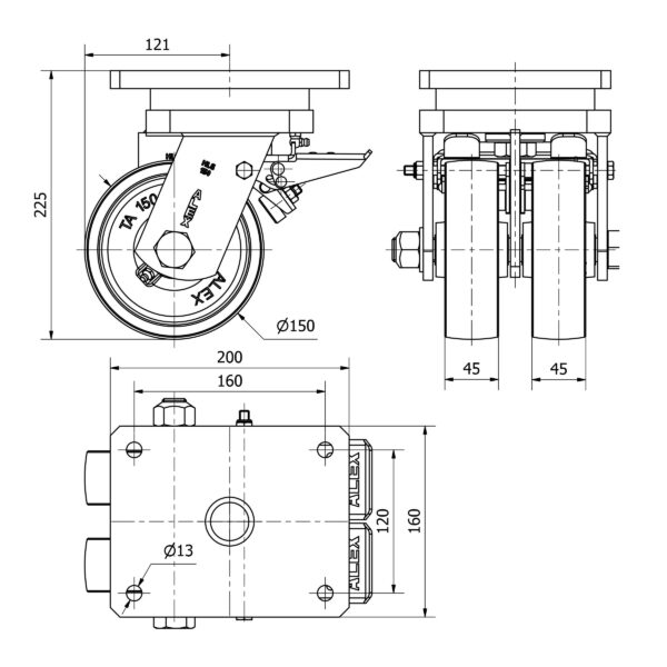 Rueda acero giratoria con freno Alex diametro 150 mm. modelo 2-3819