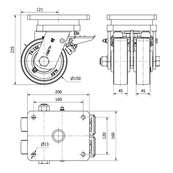 Rueda acero giratoria con freno Alex diametro 150 mm. modelo 2-3822