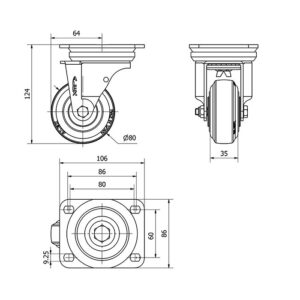 Rueda acero giratoria con freno Alex diametro 200 mm. modelo 2-2898 EAN 8422202228983