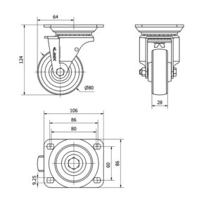 Rueda acero giratoria con freno Alex diametro 200 mm. modelo 2-2898