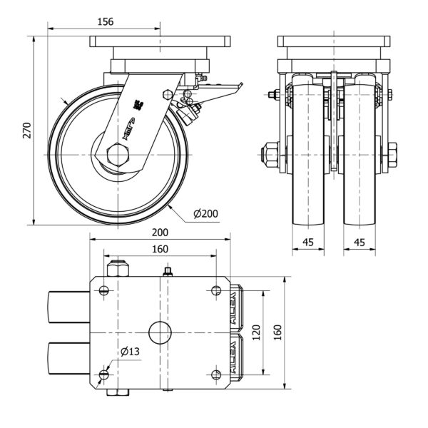 Rueda acero giratoria con freno Alex diametro 200 mm. modelo 2-3820