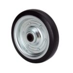 Rueda caucho Gayner diametro 250 mm. 250 PCSL2 codigo 10-028 EAN 8425631240380 n nHOJA TECNICA n nPSL2: Núcleo de plástico de color blanco y banda de termocaucho S de color negro, con cojinete liso. Banda de termo-caucho blando inyectada sobre núcleo de plástico. Estas ruedas se montan (en mangueta) sobre ejes de acero. Incluyen «arandela elástica» de retención de la rueda sobre el eje y «tapacubo» de plástico color negro. Económicas y ligeras de peso.