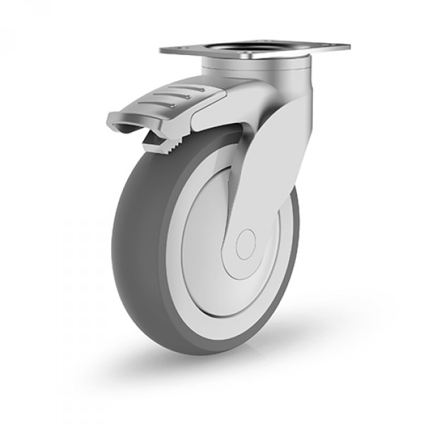 Rueda giratoria con freno caucho Gayner diametro 100 mm. SNPG3 100 PSB3-FD codigo 33-988/2-FD