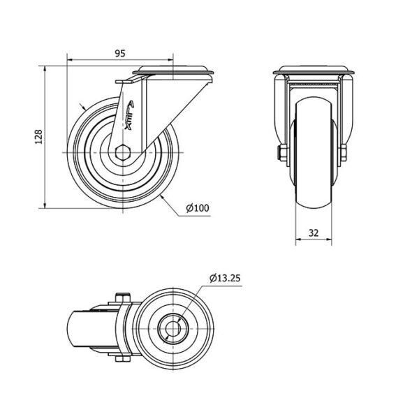 La serie de ruedas Alex ZV-PGAIB son ruedas de goma gris inyectada, indicadas para soportar cargas hasta 125 Kg. Se utilizan en carros de herramientas, carros tubulares, útiles de transporte, plataformas elevadoras, talleres, carros de transporte de alimentación, cocinas, cantinas, comedores, restaurantes, supermercados, barredoras y pulidoras. PGC: Rueda silenciosa, que no deja huella en los pavimentos, con buena absorción de vibraciones y de fácil desplazamiento.
