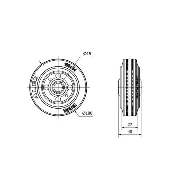 Rueda goma aro suelto Alex diametro 100 mm. modelo 2-0412