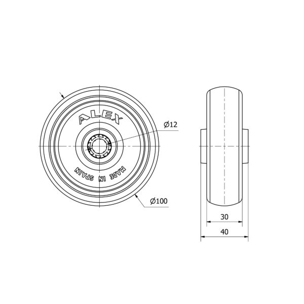 Rueda goma aro suelto Alex diametro 100 mm. modelo 2-3311