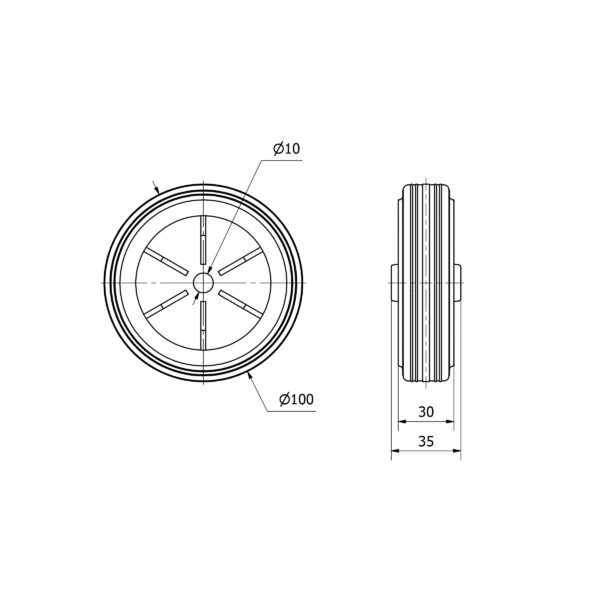 Rueda goma aro suelto Alex diametro 100 mm. modelo 4-1563