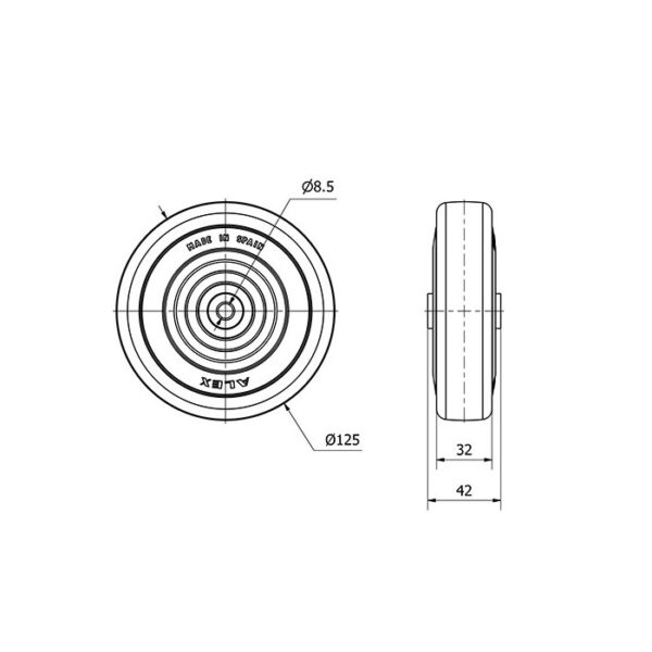 Rueda goma aro suelto Alex diametro 125 mm. modelo 2-1125
