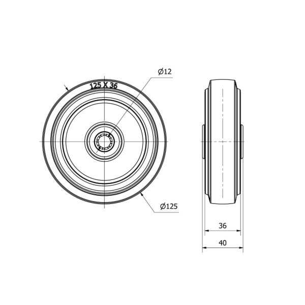 Rueda goma aro suelto Alex diametro 125 mm. modelo 2-2756