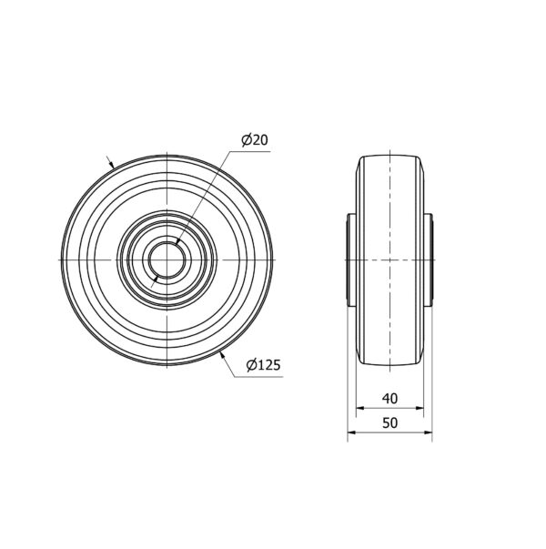 Rueda goma aro suelto Alex diametro 125 mm. modelo 4-0996