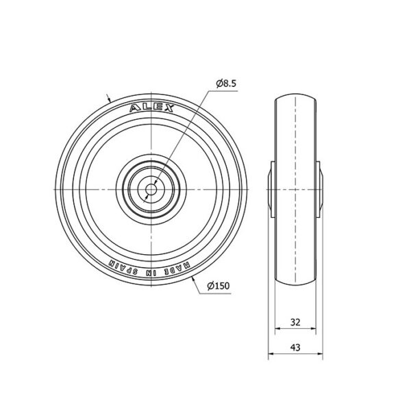 Rueda goma aro suelto Alex diametro 150 mm. 2-3577