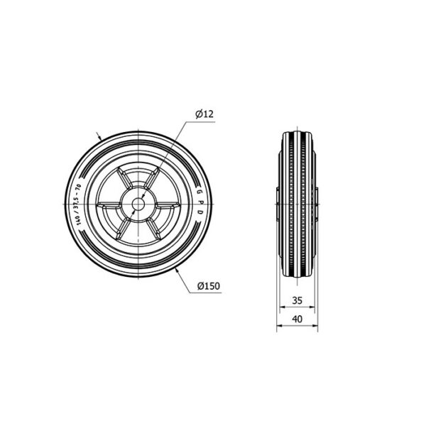 Rueda goma aro suelto Alex diametro 150 mm. modelo 2-0851