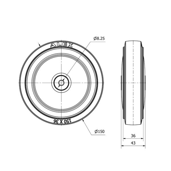 Rueda goma aro suelto Alex diametro 150 mm. modelo 2-4259