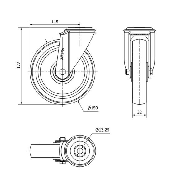 Rueda goma aro suelto Alex diametro 150 mm. modelo 2-4794