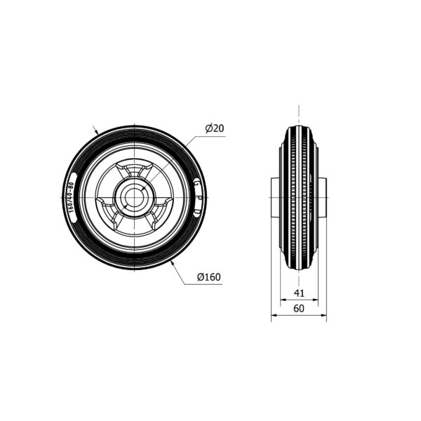 Rueda goma aro suelto Alex diametro 160 mm. modelo 2-3398