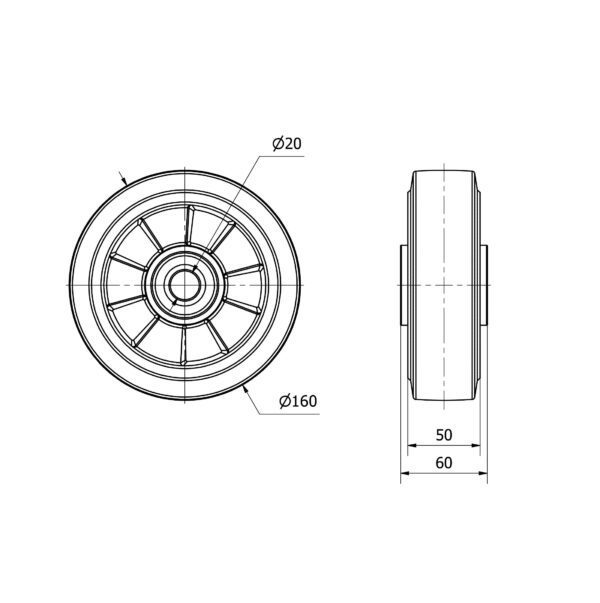 Rueda goma aro suelto Alex diametro 160 mm. modelo 4-0997
