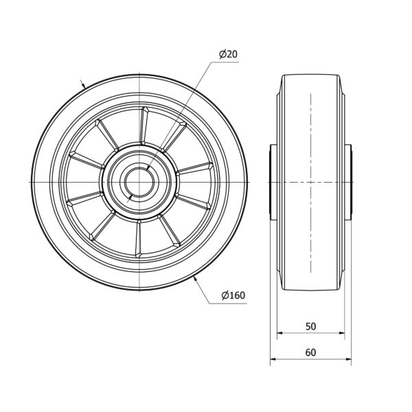 Rueda goma aro suelto Alex diametro 160 mm. modelo 4-1659