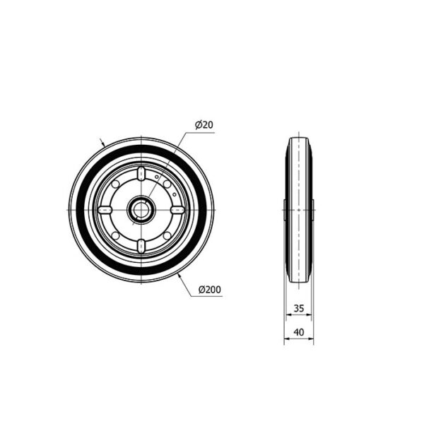 Rueda goma aro suelto Alex diametro 200 mm. modelo 2-0209 EAN 8422202202099 n nHOJA TECNICA n nLa serie de aros Alex J son de goma negra con el núcleo metálico y la banda de goma negra, con cojinete liso. Rango de temperatura: -20ºC. a +60ºC.
