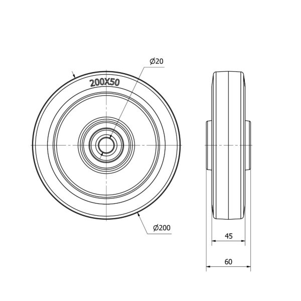 Rueda goma aro suelto Alex diametro 200 mm. modelo 2-4430 EAN 8422202244303 n nHOJA TECNICA n nLa serie de aros Alex PGM son suaves y silenciosos, elásticos y absorben los golpes y las vibraciones. No manchan el suelo.