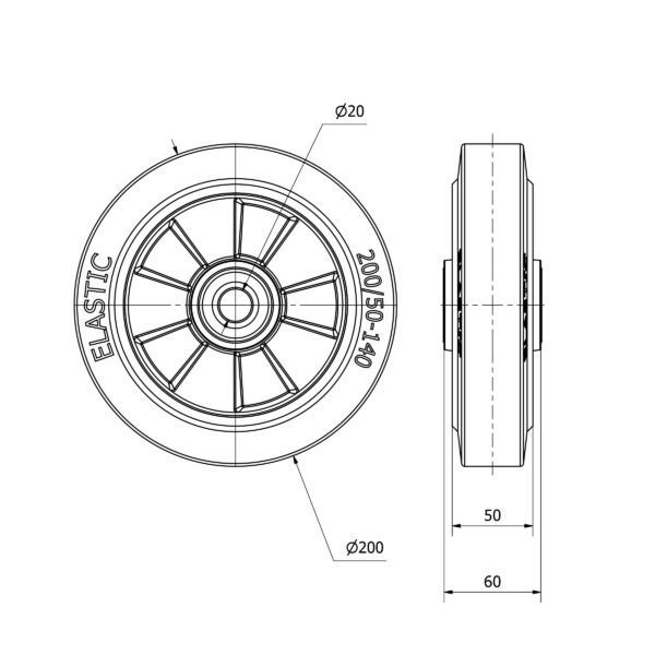 Rueda goma aro suelto Alex diametro 200 mm. 4-1660