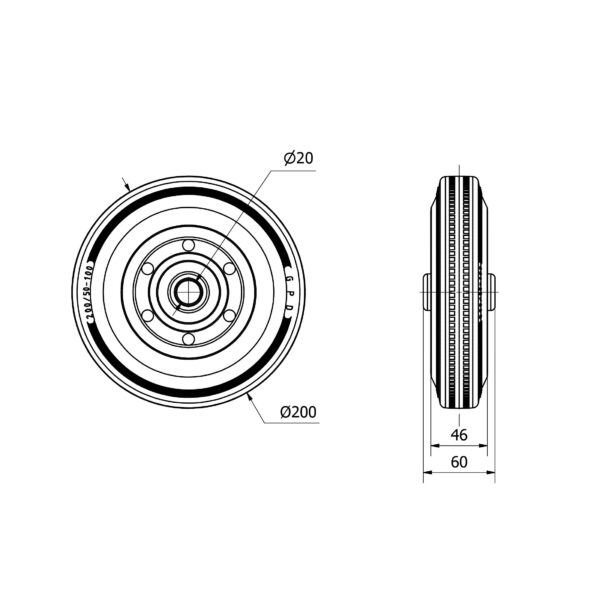 Rueda goma aro suelto Alex diametro 200 mm. modelo 4-0745