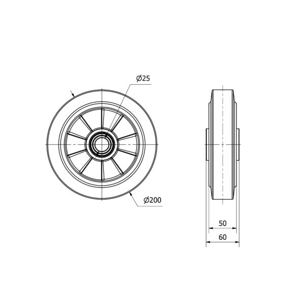 Rueda goma aro suelto Alex diametro 200 mm. modelo 4-1565