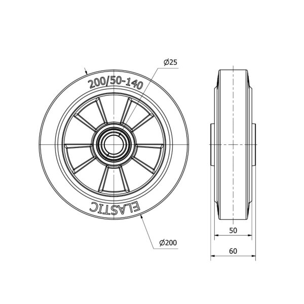 Rueda goma aro suelto Alex diametro 200 mm. modelo 4-1668