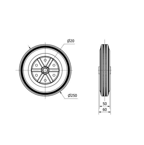 Rueda goma aro suelto Alex diametro 250 mm. modelo 4-0752