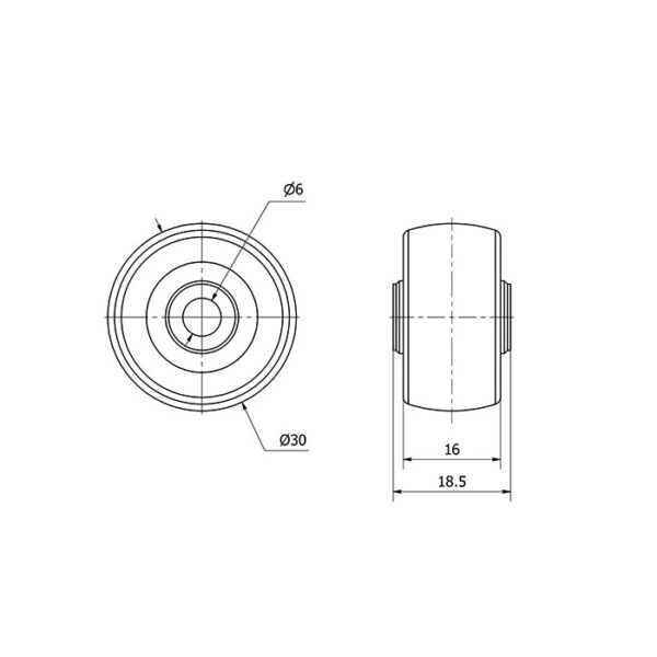 Rueda goma aro suelto Alex diametro 30 mm. 1-0467