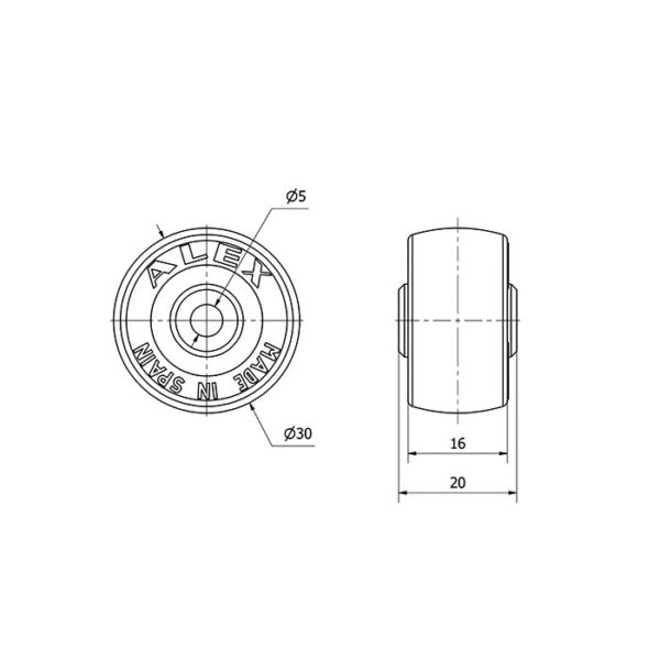 Rueda goma aro suelto Alex diametro 30 mm. modelo 1-0324 EAN 8422202103242