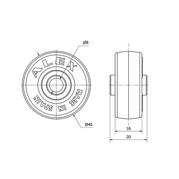 Rueda goma aro suelto Alex diametro 40 mm. modelo 1-0319 EAN 8422202103198