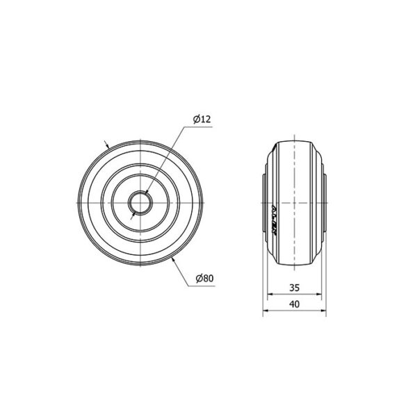 Rueda goma aro suelto Alex diametro 80 mm. modelo 2-0059