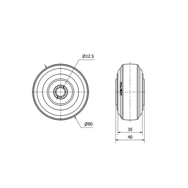 Rueda goma aro suelto Alex diametro 80 mm. modelo 2-1226