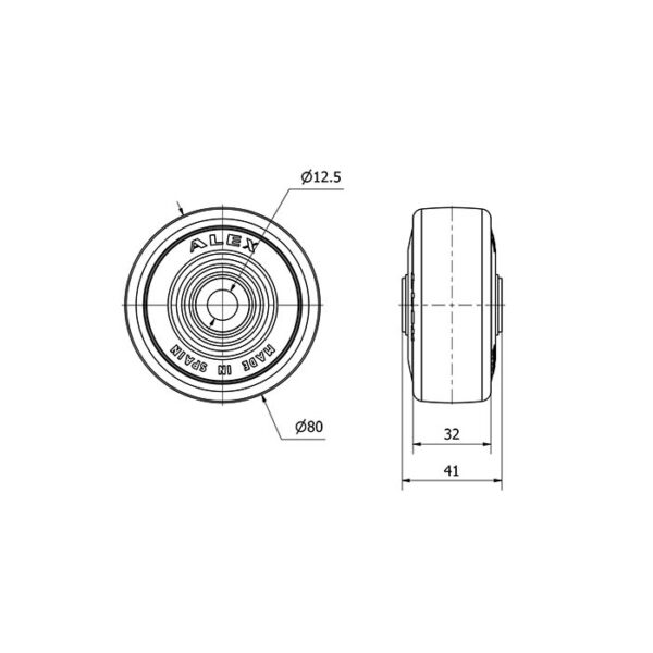 Rueda goma aro suelto Alex diametro 80 mm. modelo 2-1312