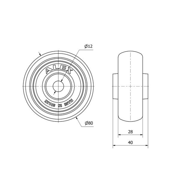 Rueda goma aro suelto Alex diametro 80 mm. modelo 2-3142