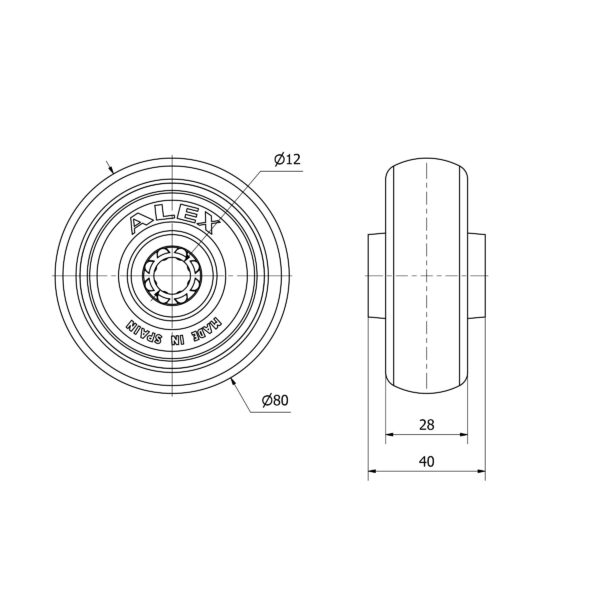 Rueda goma aro suelto Alex diametro 80 mm. modelo 2-3310