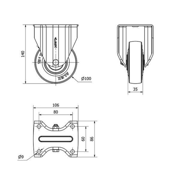 Rueda goma fija Alex diametro 100 mm. 2-0008