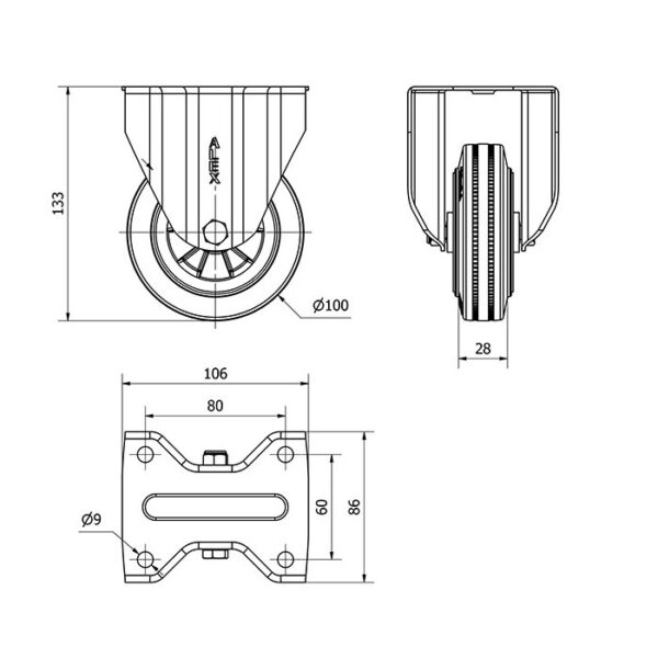 Rueda goma fija Alex diametro 100 mm. 2-0868