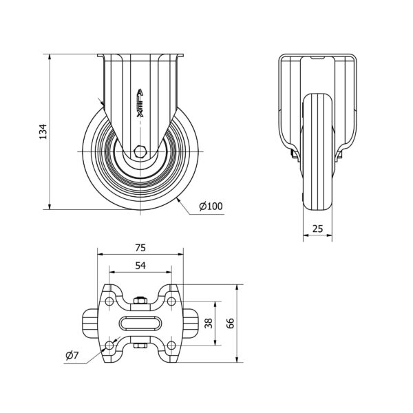 Rueda goma fija Alex diametro 100 mm. 2-2460