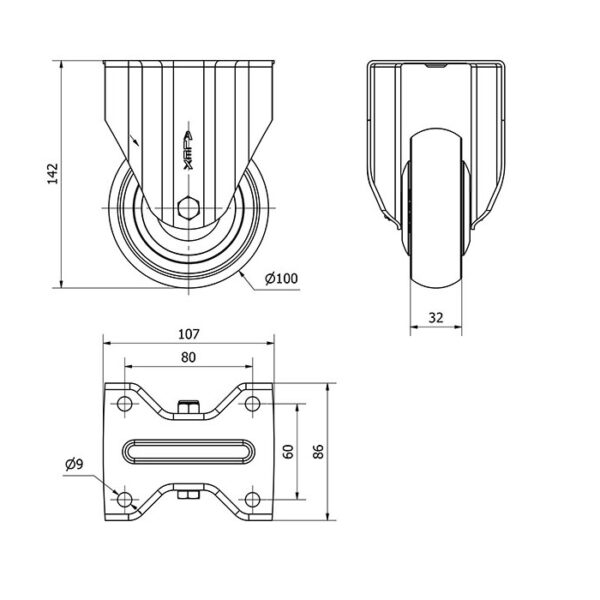 Rueda goma fija Alex diametro 100 mm. 2-2713 EAN 8422202227139
