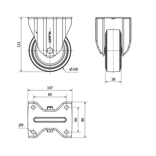 Rueda goma fija Alex diametro 100 mm. 2-4432