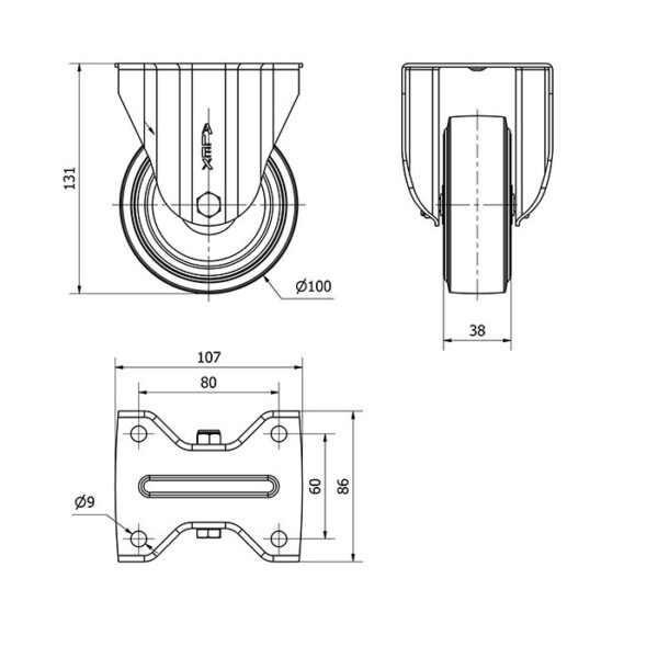 Rueda goma fija Alex diametro 100 mm. 2-4438